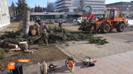 Старые голубые ели у здания окружной администрации, высаженные ещё в конце 70-х годов прошлого века, спилили.