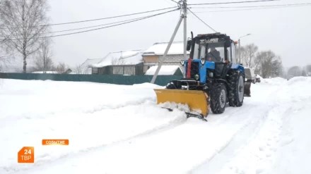 Староста деревни Напольское Юрий Емелин регулярно выезжает на своём личном тракторе и собственными силами чистит родные улицы от снега.