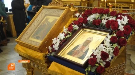 Сотни верующих Сергиева Посада встречали ковчег с нетленными мощами патриарха Тихона, который принесли в Успенский собор на Болотной улице.