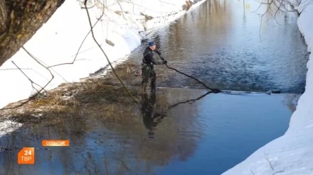 Убрать природный и бытовой мусор из реки и обеспечить беспрепятственное прохождение воды — такая задача у работников МБУ «Благоустройство СП» в преддверии периода паводков.